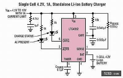 方案二 :带过流保护功能的LTC4052脉冲充电器
