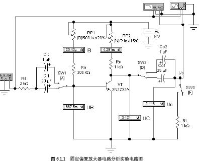 图6.1.1 固定偏置放大器电路分析实验电路图