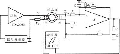 信号发生器输出信号功率小,激励电流小,小磁环很难达到饱和,几乎得不到高频磁滞回线。为此需进行以下改进得到高频磁滞回线。