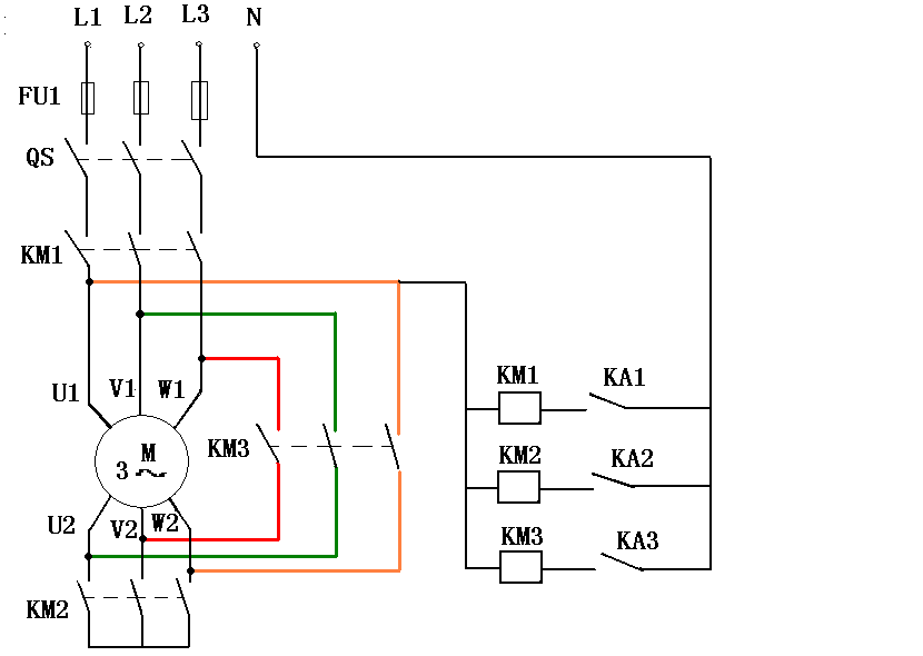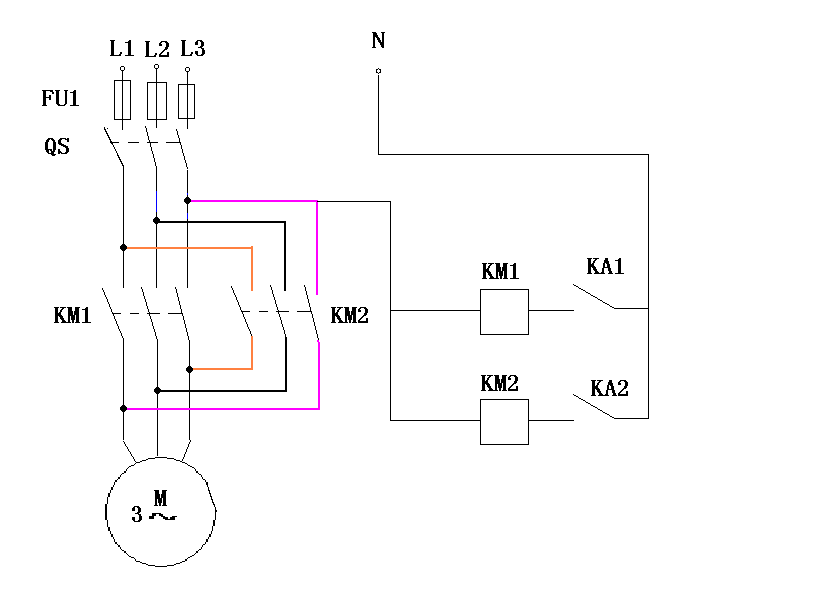 4、按下图接好主电路和控制电路。