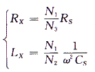 图中T1为比率准确度高的电压变压器,电压源供给加在被测阻抗和标准阻抗。调节N2(或Cs)和N3(或Rs)使电桥平衡: