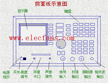 大硬键和一个大旋钮:大旋钮的功能由三个大硬键设定。按一下频率硬键,则旋钮可以微调仪器显示的中心频率;按一下扫描宽度硬键,则旋钮可以调节仪器扫描的频率宽度;按一下幅度硬键,则旋钮可以调节信号幅度。旋动旋钮时,中心频率、扫描宽度(起始、终止频率)、和幅度的dB数同时显示在屏幕上。