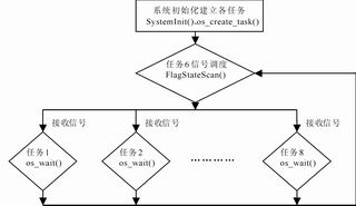 设计的思路是首先建立任务0,然后由任务0建立几个相关的任务,各任务被建立后处于等待信号状态,通过信号调度各任务的执行。具体流程图如图4所示。