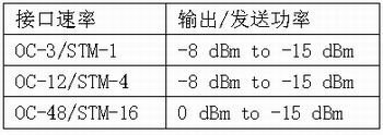 为符合Telcordia GR-253-CORE及ITU-T G.957等电信标准,线卡接收器必须正确检测低功率信号的位数从这些位数中,线卡必须提取时钟信号,误码率不超过1 x 10-10。这里给出接收器针对每一线速(OC对应Telcordia标准,STM对应ITU-T 标准)所必须拥有的最小灵敏度: