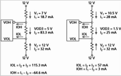 图3是在VTEST为12V的电平下,这些电阻性网络对最大最小VOD3下IOL及IOH计算的说明。