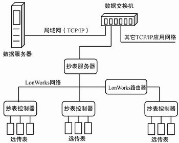 TCP/IP网络数据交换机;数据服务器;自动抄表服务器;LonWorks控制网络路由器;抄表控制器;远传表。