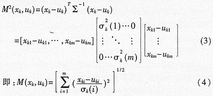 在辐射源识别中,常采用M距离作为相似性度量的标准。M距离又称为马氏距离,这里的M代表英文Maharanobis。在数理统计中,称常数