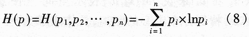 (2)非负性:熵函数是一个非负量,即: H(Pl,P2,…,Pn)≥0 (9)