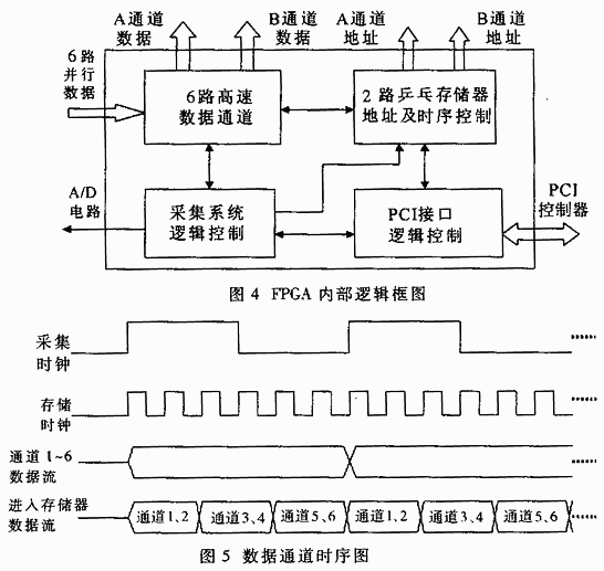 本采集系统的并行通道多达6个。为了更好地利用缓冲存储器,设计中运用FPGA产生多路到一路的高速数据通道,把6个速率为1MHz的12位数据流转换为一路乒乓切换的24位数据流,时序见图5。