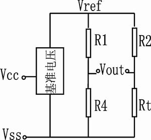 温度传感器选铂电阻PT1000,铂电阻温度传感器化学性质稳定,准确度高,使用方便,不需冷端补偿。热量表测温范围不大(0~95℃),能够满足要求。温度-电压转换采用桥路方式实现,电路如图2。