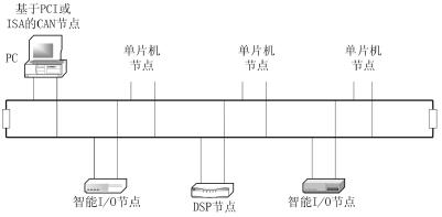 CAN的网络一般有3种实现方式:微控制器+CAN控制器+CAN收发器;集成CAN控制器的微控制器+CAN收发器;CAN的串行I/O器件+CAN收发器。只要符合CAN总线规范的单元都可以通过CAN接口接入CAN总线。CAN总线得到了Intel、Motorola、Philips、Siemens等众多大公司的支持,提供了许多可以实现CAN总线协议的芯片来供用户选择。另外,CAN协议是完全公开的,这些都给CAN总线的开发设计带来很大的方便。CAN控制器有Philips公司的82c200、SJA1000,Intel公司的82526、82527等。集成了CAN控制器的微控制器也很多,如Philips公司的P8XC592/598,Intel公司的196CA/CB,TI公司的TMS320LF2407(DSP)等。CAN的串行I/O芯片可以采用Philips的82c150。CAN的收发器有Philips的82c250,TI的SN65HVD230等。这些芯片一般都兼容最新的CAN2.0A/B协议。