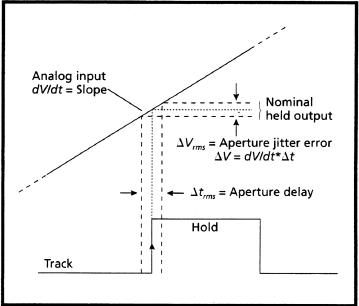需要注意的是,由于孔径延迟代表采样时钟边沿和模拟输入实际被采样之间的时间差,而ADC内部逻辑电路和模拟输入延迟差值非零,因此孔径延迟还和模拟输入信号与转换频谱之间的相位差有关。