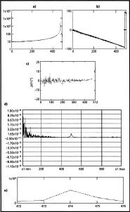 图5d是两个数据组之间逐点的延迟展示,但我们的目的是基本的测试频率。图5e是展宽的基频峰值曲线,从中可以看出峰值点位于474,把该值应用到图5d或式(4)得到孔径延迟差值为136.5ps。