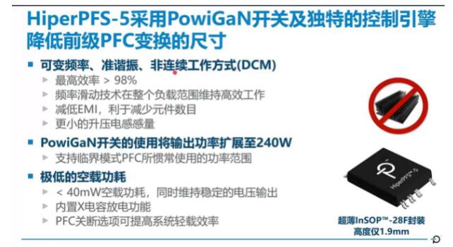 现在,PI还推出了基于氮化镓的功率因数校正IC - HiperPFS-5,该器件具有极高能效,适合USB-PD 3.1应用,并且无需散热片,可实现非常小巧的外形尺寸。