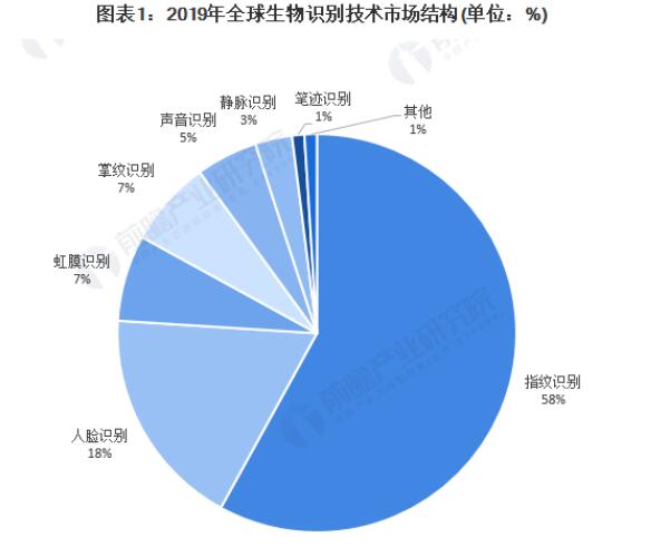 人脸识别在生物识别技术中占据重要地位,在生物识别市场结构中的占比仅次于指纹识别,占比达18%,未来随着指纹由于接触带来的污染性与病毒感染的问题以及便利性考虑,人脸识别代替指纹识别有较大的发展空间,人脸识别在生物识别市场中的占比将进一步提高。