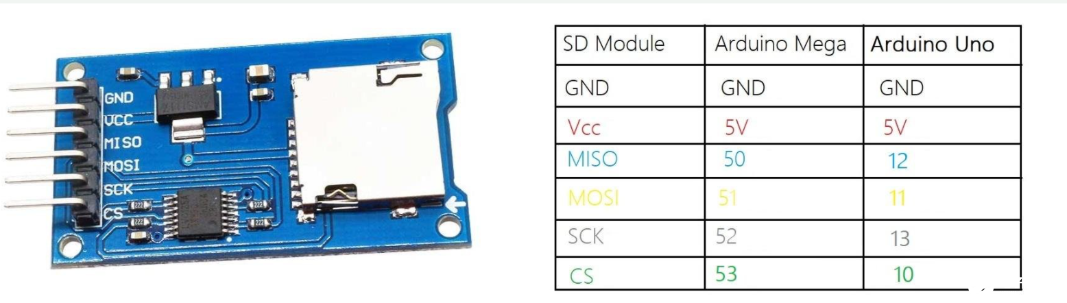SD卡模块通过串行外围接口(SPI)通信协议与Arduino通信。它可以简单地连接到Arduino的硬件SPI引脚。