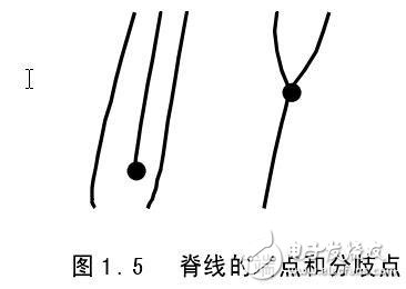 图1.5为这两种特征的示例。脊线的端点是脊线结束的位置,分歧点是脊线分岔的位置。据统计一般一枚完整的指纹有大约60-80个细节特征。无论是人工匹配还是机器匹配,指纹比对的过程一般可分为以下两步: