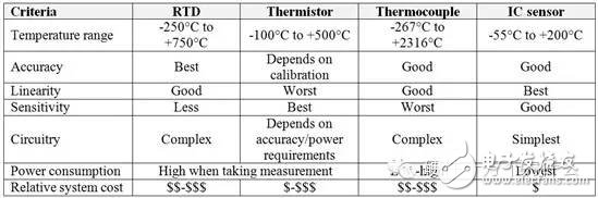 经验丰富的电路板设计人员将根据最终产品要求来使用最合适的解决方案。表1展示了每种温度传感器的相对优势/劣势。