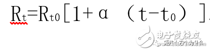 式中,Rt为温度t时的阻值;Rt0为温度t0(通常t0=0℃)时对应电阻值;α为温度系数。半导体热敏电阻的阻值和温度关系为: