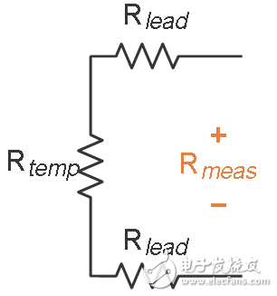 与热敏电阻相似,铂电阻温度传感器(RTD)是用铂制成的热敏感电阻。当通过测量电压计算RTD温度时,数字万用表用已知电流源测量该电流源所产生的电压。这一电压为两条引线(Vlead)上的压降加RTD上的电压(Vtemp)。例如,常用RTD的电阻为100Ω,每1℃仅产生0.385Ω的电阻变化。如果每条引线有10Ω电阻,就将造成26℃的测量误差,这是不可接受的。所以应对RTD作4线欧姆测量。