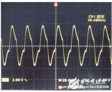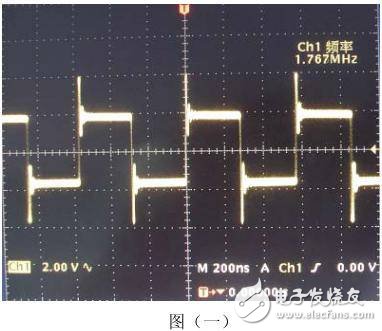 重复测试,确认其所述现象属实。检查软件代码,确认其软件没有开启 STM32 的 CSS功能。修改代码,将 PLL 的二分频从 STM32 的 MCO 管脚送出,以方便用示波器观察。通过控制晶体的管脚是否接地来控制 HSE 是否振荡。当 HSE 正常振荡时,MCO 送出的信号频率为 36MHz,当 HSE 停止振荡时,MCO 送出的信号的频率在 1.7MHz 附近,如图(一)所示: