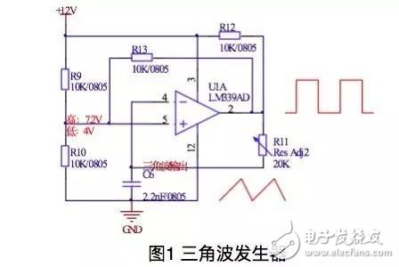 图1为三角波发生电路,利用电容的充放电原理实现,测