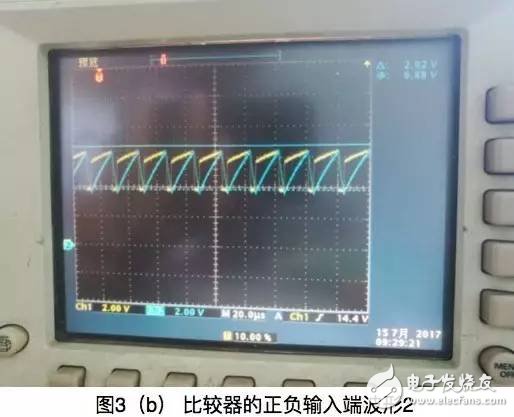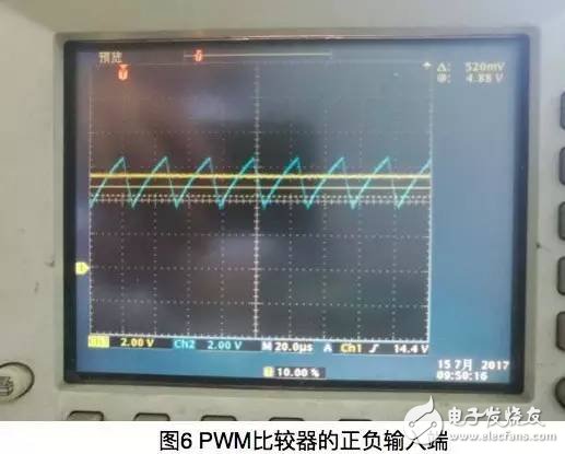 三角波电路和直流电平测试完成后,接下来就是两路信号比较,输出PWM波。比较器的两路波形如图6所示: