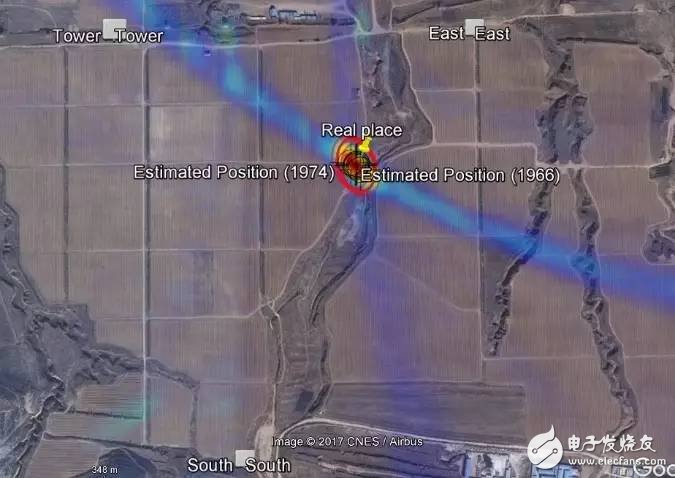 接下来,在无人机的实际飞行过程中,成功实现了对无人机及其控制器的定位,误差范围不超过50米(见下图)。其中N6820 ES软件用于执行信号的识别分类和定位结果输出;N6854A软件通过无人机发射的视频回传信号对其进行定位,并结合业界独有的信号回看(LookBack GEO)和时间同步技术,对控制器发射的跳频信号实现精准定位。