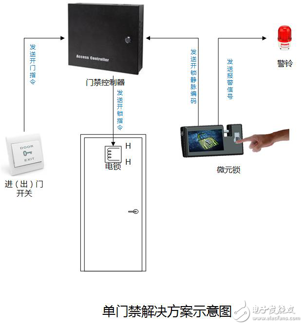 微元锁集成了采集手指静脉信息,存储手指静脉信息,运算比对静脉纹路,加密等功能,通过向门禁控制器发送“开”、“不开”或“报警”的指令,对单门禁系统形成智能控制的一种解决方案。