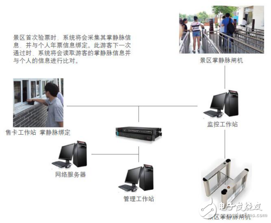 掌静脉识别仪采用近红外线感应器取得手掌静脉的分布图,储存样板,进而建立每个人独特的手掌静脉数据库;通过登录每个人的手掌静脉数据,达到生物识别功能的管理。它能连接门禁控制器及外部设备和网络,具有声音提示信息及显示功能。