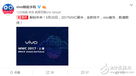 电子发烧友早八点讯:vivo带来了一条重磅消息!一张有关上海MWC 2017的海报正式在vivo官方微博发布,暗示着这一隐形指纹技术或将由vivo首发。