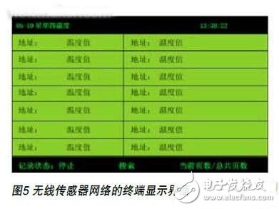 整个线网络系统可以接入多达200个无线传感器,每个无线设备的无障碍传输半径为500米,产品采用电池供电,2年左右需要更换一次电池。每一个无线传感器终端均可以显示如图5所示的中文界面。