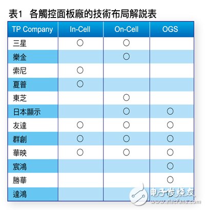 另外,随着苹果(Apple)将内嵌式(In-cell)(图1)触控技术用在iPhone5产品上,高阶智慧型手机产品无不争先恐后的跟进,使得触控面板市场战火升温(表1),包括薄膜电晶体液晶显示器(TFTLCD)面板厂(如友达、群创及华映)亦积极抢食触控商机大饼。
