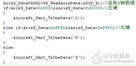 接下来,M3通过IIC总线方式读取ADXL345测得的X轴的加速度数据,只要通过判断X轴方向的数据就可以判断基板往哪个方向倾斜了。下面是M3的测量代码
