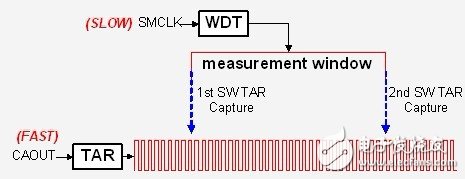 MSP430的内置比较器和外部的冲放电电阻Rc以及感应电容Csensor一起构成了一个张驰振荡器结构。而感应电容Csensor就是这个振荡器的调协元件,Csensor的任何变化都相应的改变张驰振荡器的谐振频率。我们利用MSP430内置的定时器A来采样振荡频率,从而可以检测到Csensor的变化。
