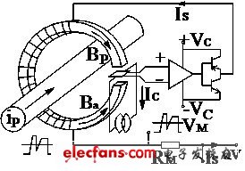 霍尔电流传感器基于磁平衡式霍尔原理,即闭环原理,当原边电流IP产生的磁通通过高品质磁芯集中在磁路中,霍尔元件固定在气隙中检测磁通,通过绕在磁芯上的多匝线圈输出反向的补偿电流,用于抵消原边IP产生的磁通,使得磁路中磁通始终保持为零。经过特殊电路的处理,传感器的输出端能够输出精确反映原边电流的电流变化。