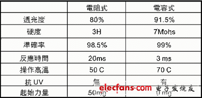3M目前推出最新的电容产品ClearTekⅡ,下表则是一般电阻式和3M电容式的比较表。