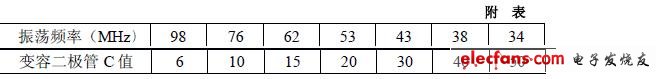 值,再根据上面谐振公式可算出变容二极管在电位器VR1 刻度盘不同刻度的电容量。附表