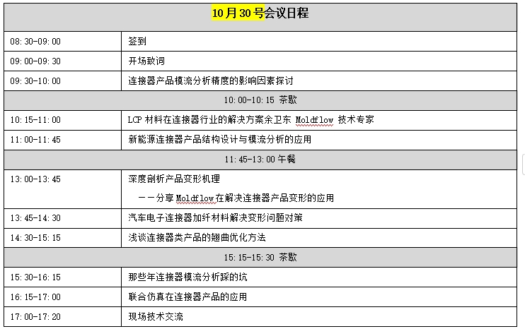 为了让连接器用户更直观的体验Moldflow仿真带来的价值,我们将在10月30号-上海虹桥国家会展中心希尔顿欢朋酒店举办一场关于《连接器行业-Moldflow仿真专题研讨会》。