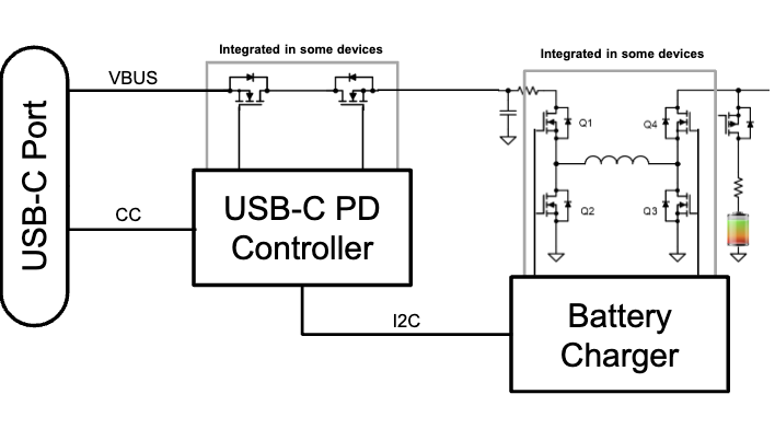 图 2 展示了过渡到 USB-C 和 USB PD 的设备的典型架构。