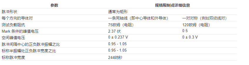 用于传输数据的传输线的衰减也需要表征。该标准假设√f定律,基本工作频率2048 kHz的损耗应在0至6 dB(最小值)范围内。这种损耗必须考虑终端设备之间的数字分配帧中产生的任何损耗。换言之,所需的损耗在驱动器和接收器之间。