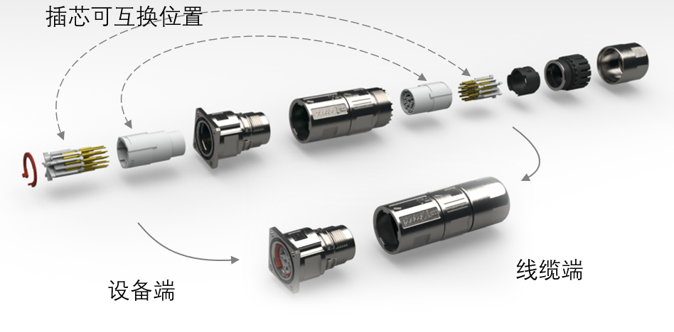 M17 圆形连接器结构紧凑、坚固耐用,将高度灵活性和多功能性集于一身。M17 圆形连接器具有芯数密度高、承载电流大、安装空间小的特点,非常适合在空间有限的系统中使用。har-lock 快速锁紧系统可与 M17 快速锁紧系统 Speedtec 和 ONECLICK 相互插配。