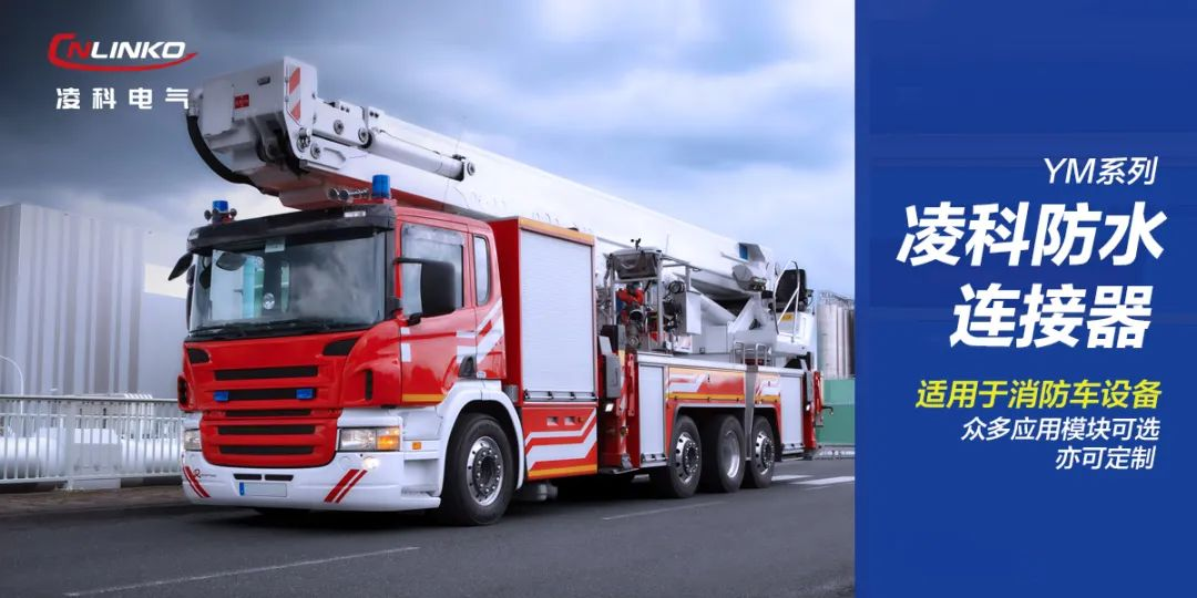 消防车及设备是一个城市的重要基础设施,这些设施必须确保万无一失才能保障人们生命和财产的安全。其中保障高可靠、高速与安全传输的连接器便是一项关键的硬件。凌科电气的YM系列圆形防水连接器,凭借在防水、耐腐蚀、阻燃、抗振抗冲击等方面的特点,得到大量消防车及设备厂商的青睐。以卓越品质著称的凌科将持续为更多行业和领域提供高契合高性能的航空插头连接器产品服务。