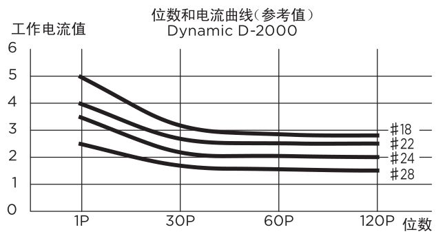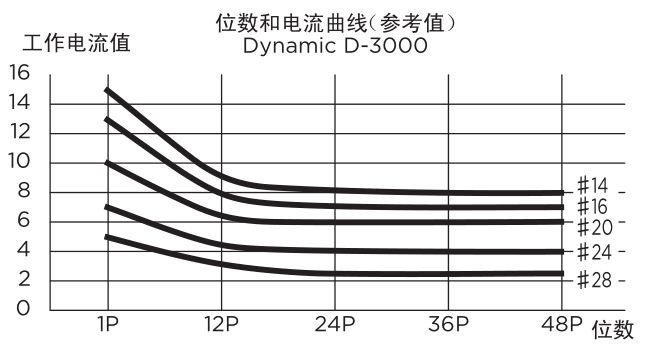 该类情况下,由上述电流曲线,D-3000使用#16时,可满足8A20位应用;D-2000使用#18电缆时,可满足3A20位应用。根据TE D-2000端子和D-3000端子规格选择相应型号。