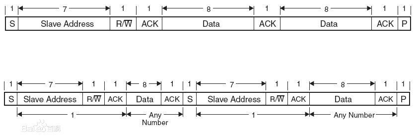 图4. I2C普通的和带重复开始条件的7位地址格式