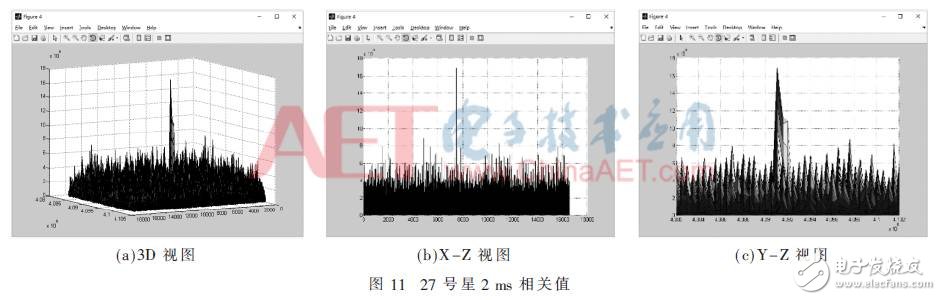 软件还支持多毫秒叠加,设置多普勒搜索步长、频率和CA码采样点数等。由于当前某颗卫星的信号比较弱,1 ms相关值累加有可能不能准确地找出相关峰,此时可通过多毫秒累积的方法得到相关峰。图10为27号星1 ms的相关值,从图中不能明显地观察到相关峰,但通过图11中的2 ms运算可以看到,在频率为4.092 MHz、码相位为8 000处有明显的相关峰。