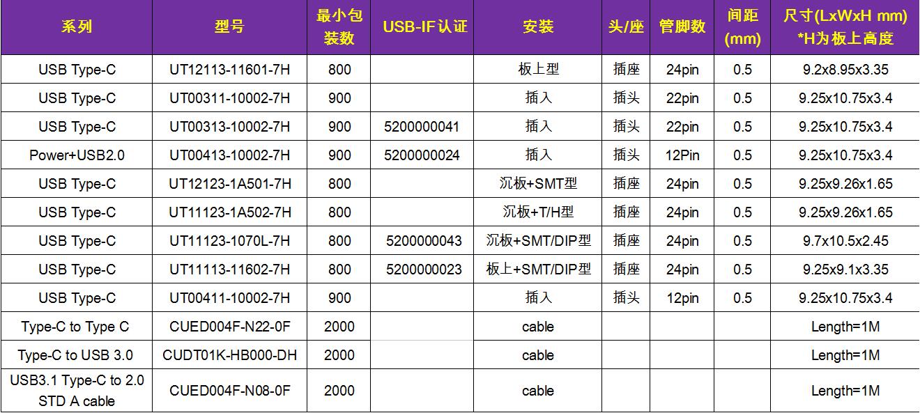 前面介绍的富士康type-c连接器 如果有兴趣进一步了解,可以看看下面的主要参数: