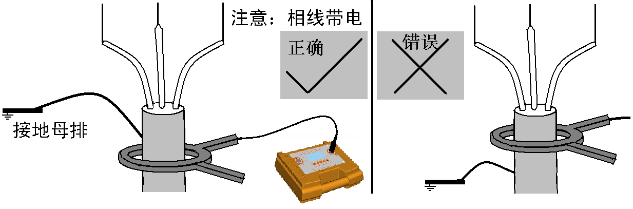 图3-2-2 运行电缆卡钳耦合法2(卡电缆接地线)
