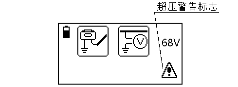 若管线自身电压超过限制(50V),则停留在电压检测界面,并显示警告标志,不输出信号以保护仪器不被损坏,屏幕显示如下: