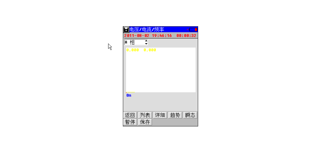 电压/电流/频率可测量三相电压、A相电压频率、三相电流以及零线电压和零线电流。使用的按钮如下:
